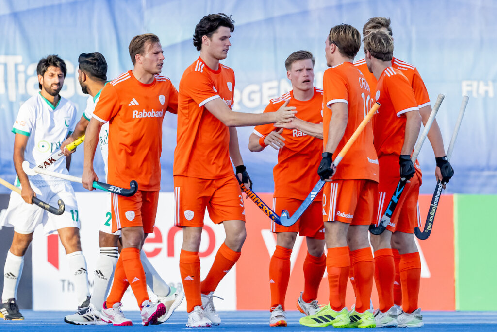 Dankzij een succesvolle tweede helft hebben de Oranjemannen hun eerste wedstrijd van het nieuwe Pro League-seizoen gewonnen. Nederland, dat vorig jaar de landencompetitie won, versloeg Pakistan met 5-2. Bij rust stond het nog 2-2. De corners gaven de doorslag bij Oranje, dat al zijn pogingen benutte. Timo Boers maakte er twee, Tijmen Reyenga pushte er eentje binnen. De eerste stap richting de Olympische Spelen van Los Angeles is daarmee gezet. Een ticket daarvoor is namelijk dit jaar de prijs voor de Pro League-winnaar.